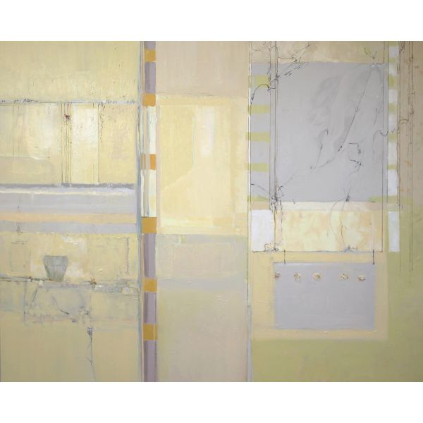 In her "Abstract Stories" series, those atmospheric spaces became increasing bounded by spontaneously drawn shapes. Painted in shades of ochre-tinted white -the color of bone-- the enclosed spaces began to take on shapes that suggested something as intimate and normally hidden as bone; organic shapes that suggest body parts unveiled here and there as though to tease a lover.