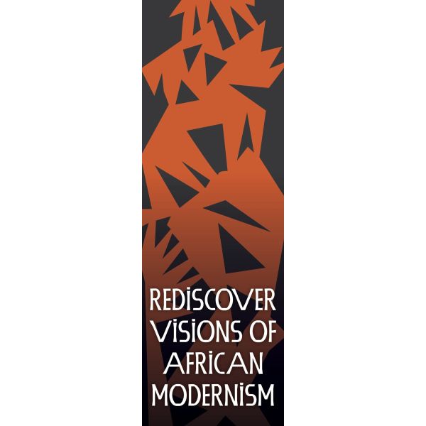Authentic vinyl banner from the Toledo Museum of Art Exhibition: Black Orpheus: Jacob Lawrence and the Mbari Club.