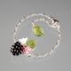 Lampworking (also called Flameworking) is the process of sculpting glass in the 4000F flame of an oxygen propane torch. The Italian-made glass Elizabeth most often uses has a working range between 1,000F and 1,700F. In the upper part of that range, the glass can become as liquid as honey and must be constantly rotated to prevent it from dripping. Toward the lower end of the working range, the glass begins to solidify and develops plastic qualities much like clay or soft wax. The sculpture in progress must be moved back and forth in the flame to maintain it in that critical plastic temperature range. If the piece is allowed to get too hot, surface details will be melted away and the sculpture spoiled. If it is heated unevenly or cools too much, the sculpture will shatter apart, sending near-molten bits of glass in all directions. Each flameworked object Elizabeth makes is hand-sculpted; therefore no two are ever exactly alike. Variations in the surface color are achieved by carefully controlled heating and cooling, by mixing several glass colors together, or by applying vitreous enamel, which is finely powdered glass. When enamel is used, it is completely fused into the sculpture and will not fade or flake off. Any stems, such as those on cherries, are embedded into the glass and are made of solid copper wire that is unfinished or has an oxidized patina. No paint is applied to any of the objects.