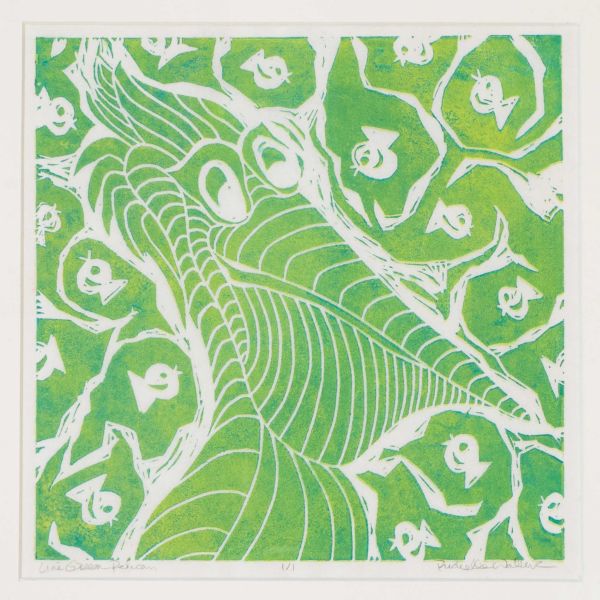 Michelle Walker - "Lime Green Pelican" Linoleum Print