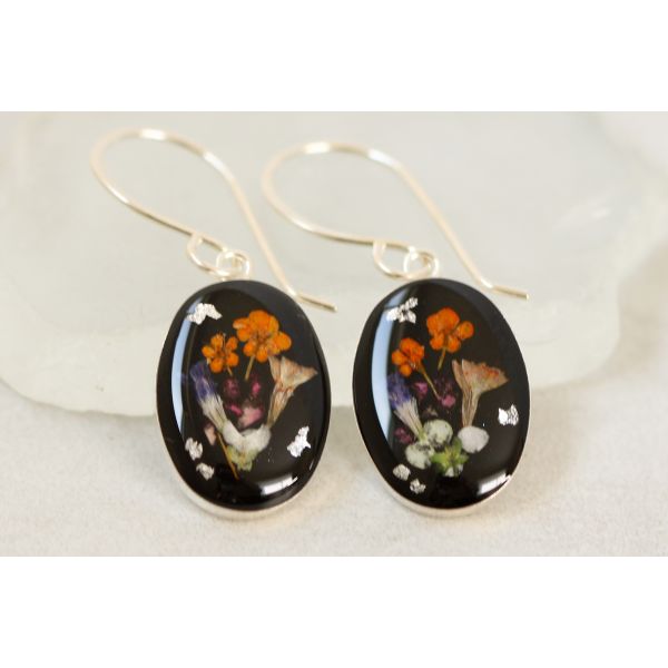 Using a multimedia approach, Rebecca infuses real plants-many of which she grows and dries-epoxy clay, and the subtle shimmer of mica powders, crushed glass, and metal leaf into her designs, all encased in crystal-clear resin. This resin, carefully degassed to ensure perfection, encases each element in a lustrous, high-polished finish. The creation of handmade ear wires from sterling silver and gold-filled wire for her dangle earrings exemplifies her commitment to detail and the wearer's comfort. The final effect of each piece results in an aesthetic that is both earthy and ethereal.