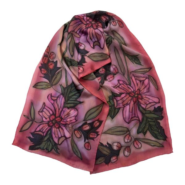 Susan Skove - "Charmeuse Rose Floral" Silk Scarf 15x60