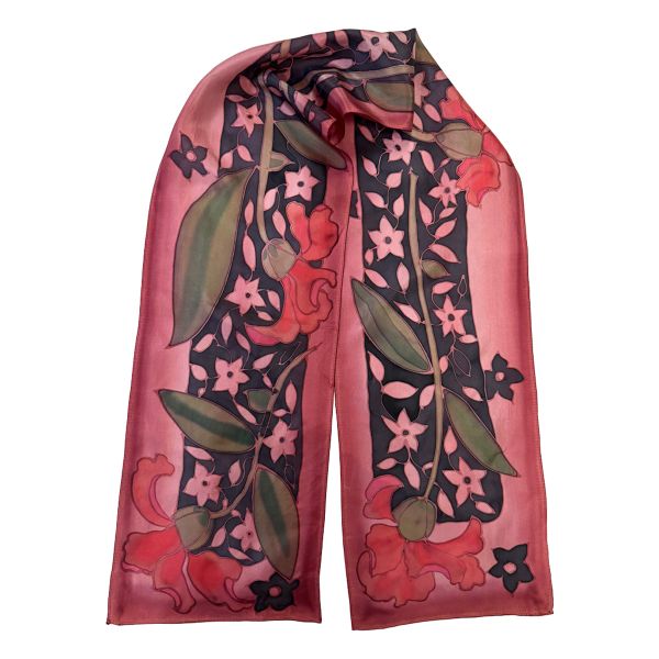 Susan Skove - "Crepe Pink Floral" Silk Scarf 8x54
