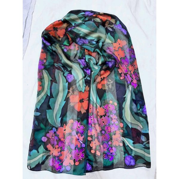 You're reviewing:Susan Skove - "Satin Green Floral" Silk Scarf 17x72