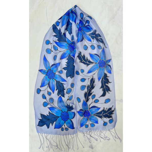 You're reviewing:Susan Skove - "Silk Fringe Blue Floral" Silk Scarf 8x54