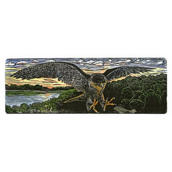 I begin with sketches, photographs, and research materials to develop a working design. This design is transferred, in reverse to a very smooth end grain block of maple wood. I begin carving out the white areas with different sizes of wood engraving tools, called burins. They produce very narrow to very wide white lines. I have finished carving a block in a week, but it usually takes me three weeks for an average block. I complete 10-18 blocks a year. To print a proof (a sample), a brayer (roller) is used to spread a thin layer of oil-based printing ink on the surface of the block, coating the uncarved, raised areas. Paper is placed on top of the block and then I run a simple roller proof press over the top of the paper and block and may rub the corners with a wooden spoon. I work in small sizes; 2x3 inches to 5x7 inches. Each hand printed wood engraving is an original print. An edition is expressed in a fraction listed on the print: 5/25 is the 5th print signed of a total of 25. I normally print two editions (or more) from the same block, indicated in the title by #1 or #2. The first version is a 'plain' black and white print, the second edition is a black and white print painted with watercolor. A two-color reduction print starts with carving away the white area, printing a color, and then recarving the block, and printing the second (black) color. I mat and frame the prints myself using museum quality, all rag mat boards and black metal frames. The prints are attached using corners. I do all the artwork; my husband helps me as a business manager, transportation director, booth engineer, sales person, and general bottle washer.