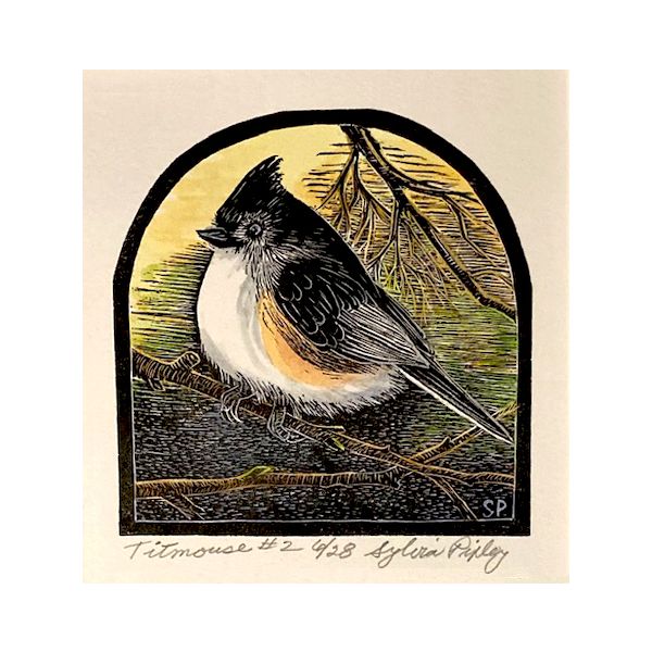 I begin with sketches, photographs, and research materials to develop a working design. This design is transferred, in reverse to a very smooth end grain block of maple wood. I begin carving out the white areas with different sizes of wood engraving tools, called burins. They produce very narrow to very wide white lines. I have finished carving a block in a week, but it usually takes me three weeks for an average block. I complete 10-18 blocks a year. To print a proof (a sample), a brayer (roller) is used to spread a thin layer of oil-based printing ink on the surface of the block, coating the uncarved, raised areas. Paper is placed on top of the block and then I run a simple roller proof press over the top of the paper and block and may rub the corners with a wooden spoon. I work in small sizes; 2x3 inches to 5x7 inches. Each hand printed wood engraving is an original print. An edition is expressed in a fraction listed on the print: 5/25 is the 5th print signed of a total of 25. I normally print two editions (or more) from the same block, indicated in the title by #1 or #2. The first version is a 'plain' black and white print, the second edition is a black and white print painted with watercolor. A two-color reduction print starts with carving away the white area, printing a color, and then recarving the block, and printing the second (black) color. I mat and frame the prints myself using museum quality, all rag mat boards and black metal frames. The prints are attached using corners. I do all the artwork; my husband helps me as a business manager, transportation director, booth engineer, sales person, and general bottle washer.